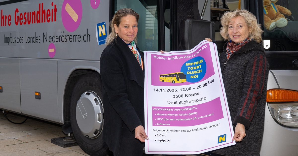 Am 13. November startet in Korneuburg der NÖ Impfbus mit seiner Herbsttour. Angeboten werden diesmal kostenlose Impfungen gegen Influenza, Humane Papillomviren (HPV) und Masern. „Der NÖ Impfbus wird in 13 Städten Halt machen und kostenlos, ohne Voranmeldung Impfungen sowie Beratungen niederschwellig…